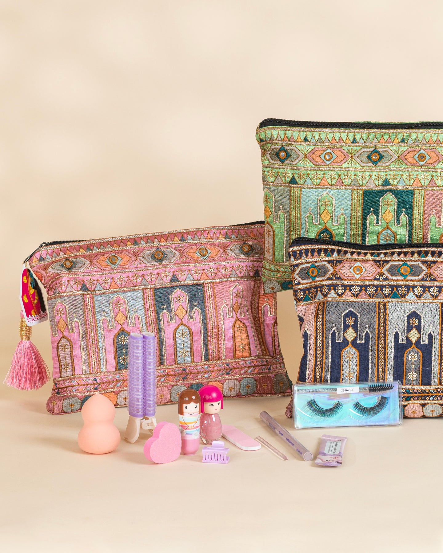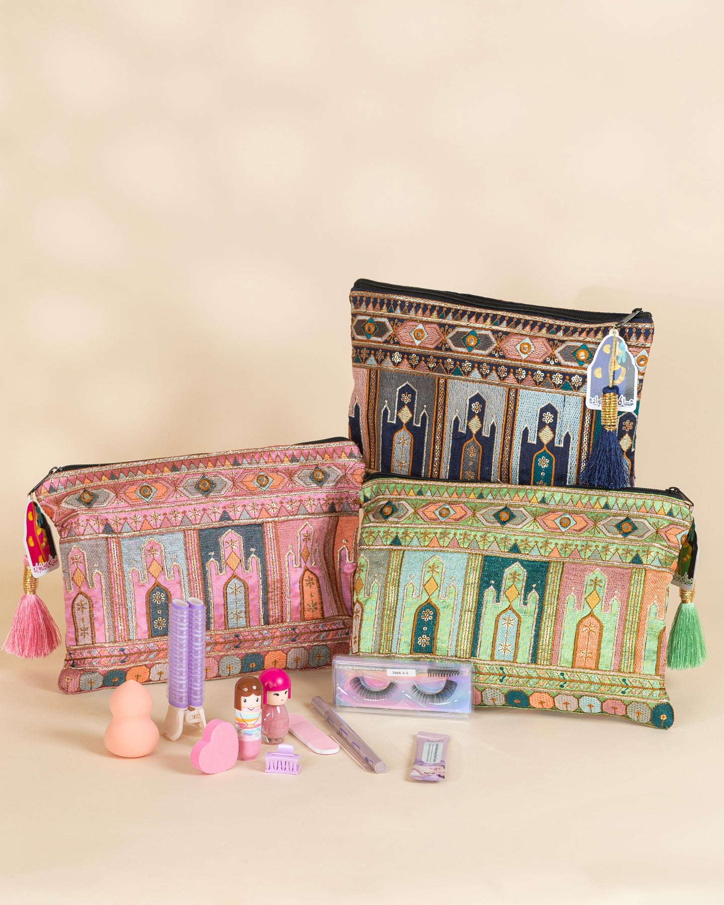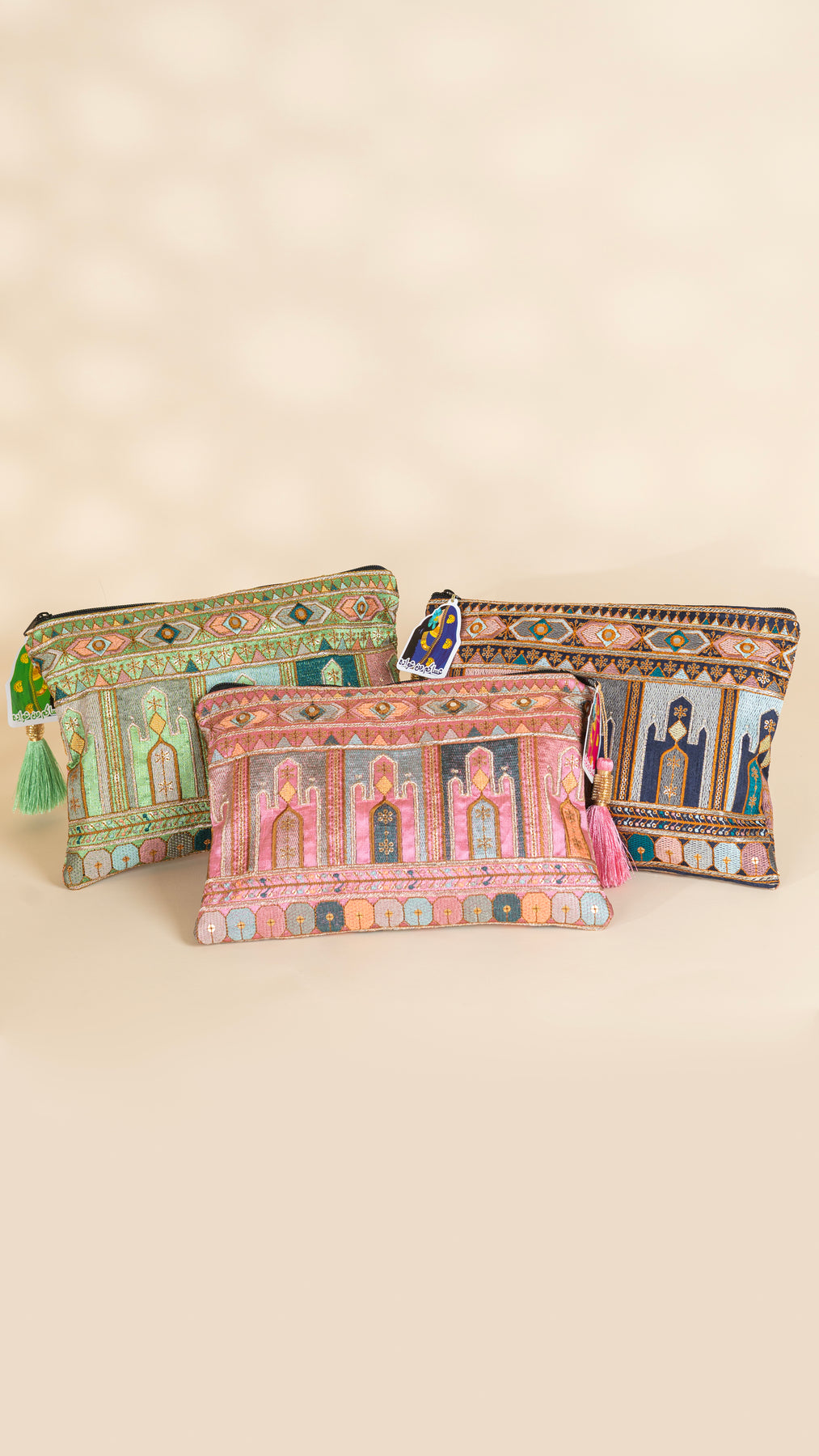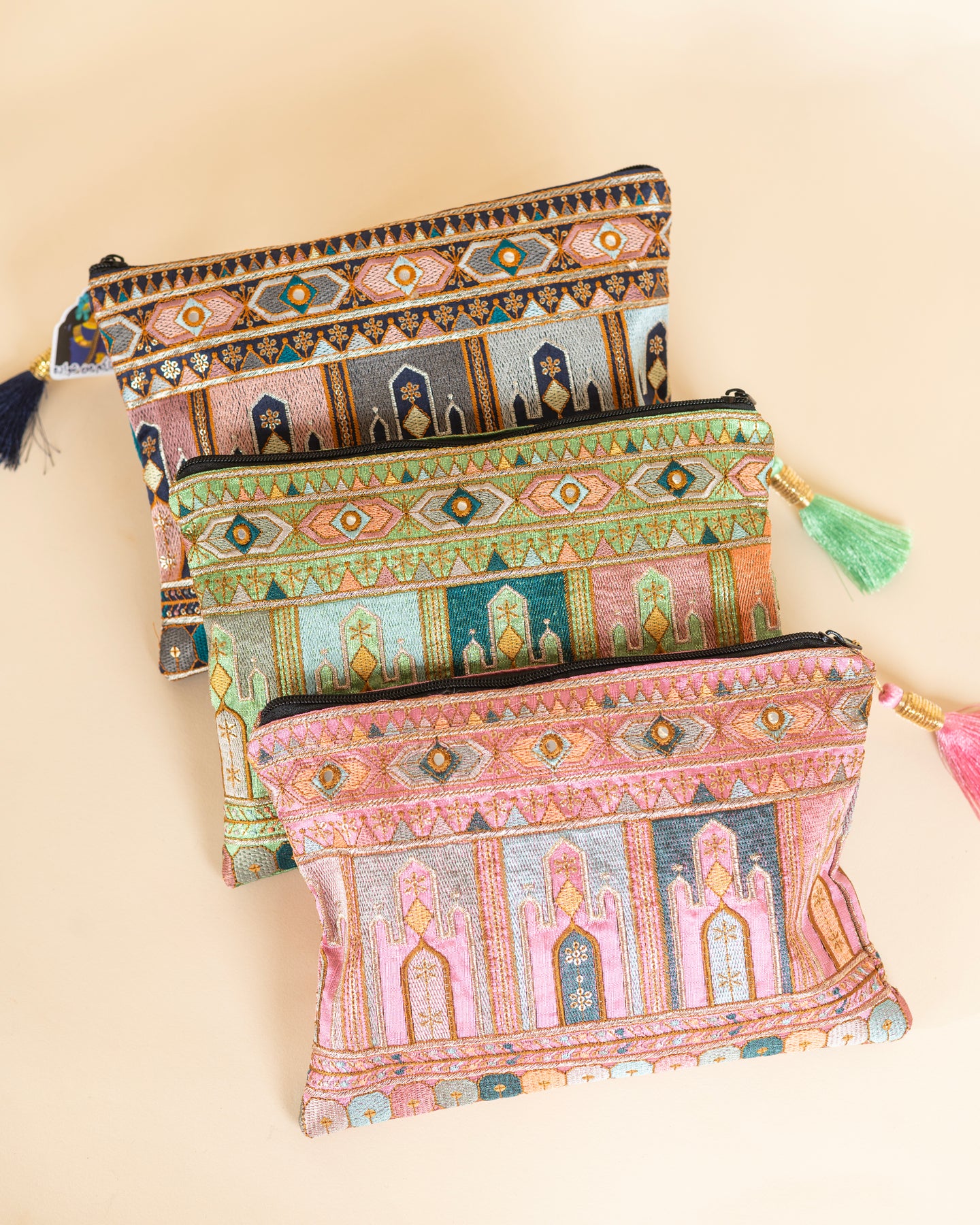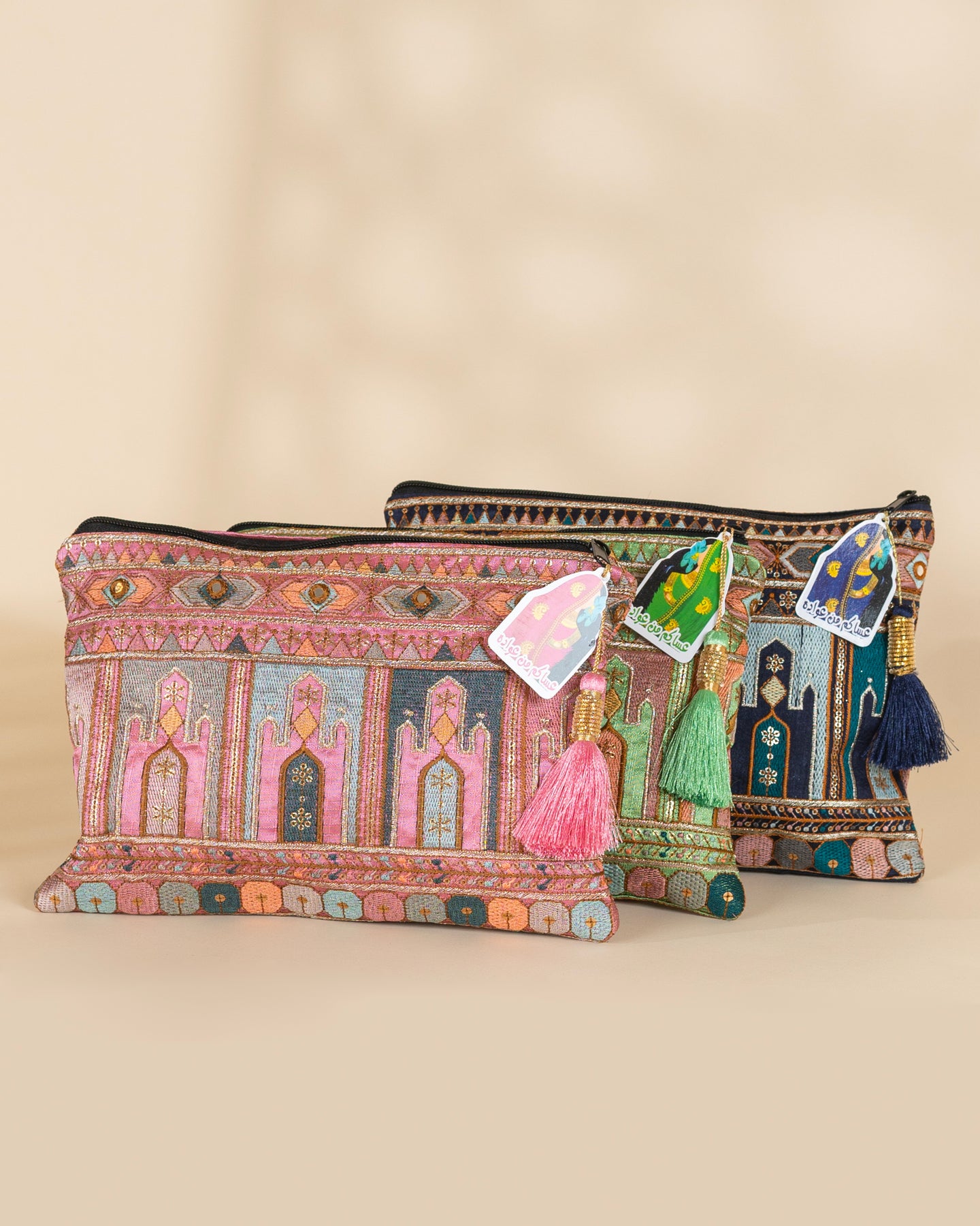 Ideal for use as a makeup bag, a daily essentials pouch, or a statement accessory to complete your outfit. These bags also make luxurious gifts or elegant giveaways for festive and cultural occasions.