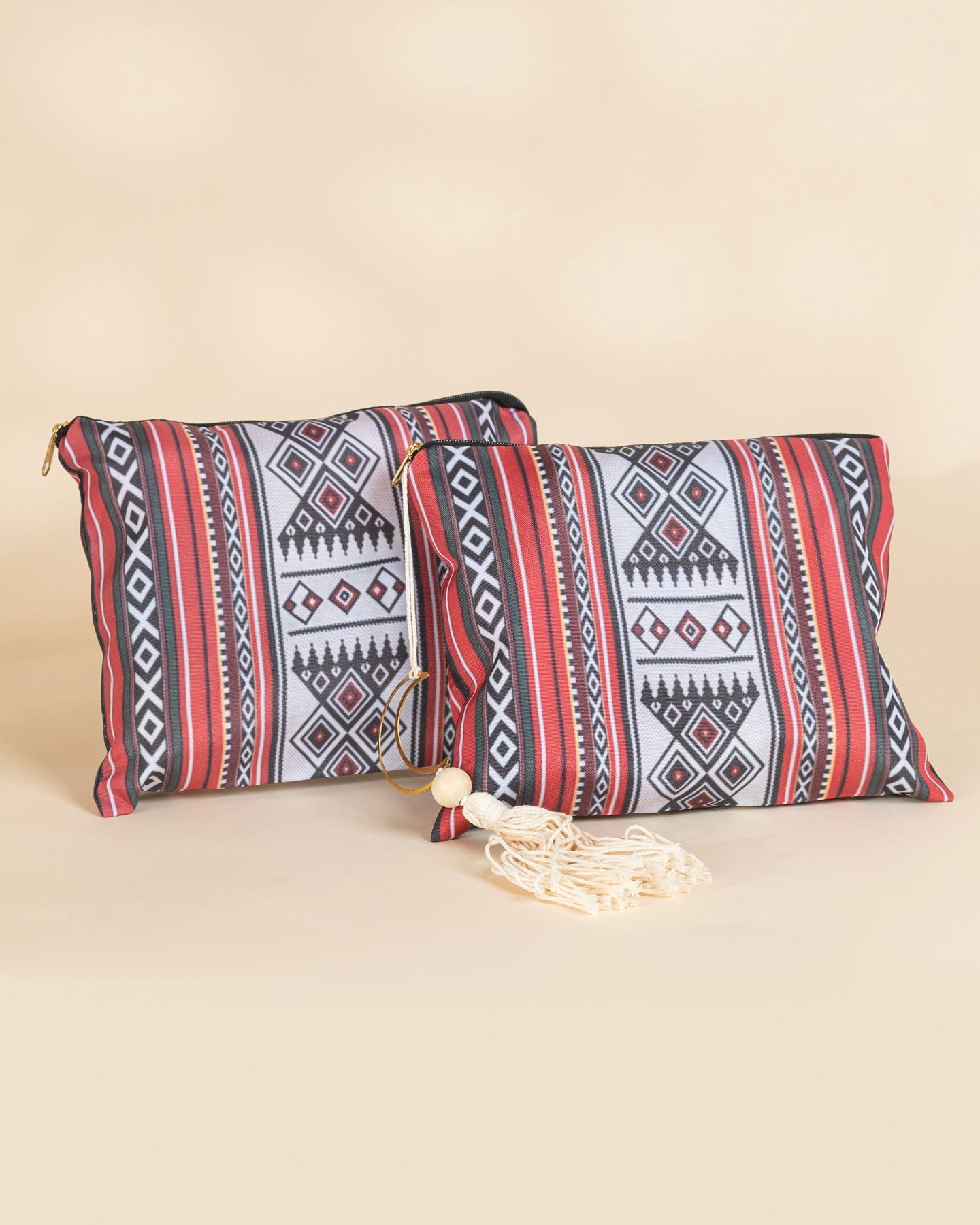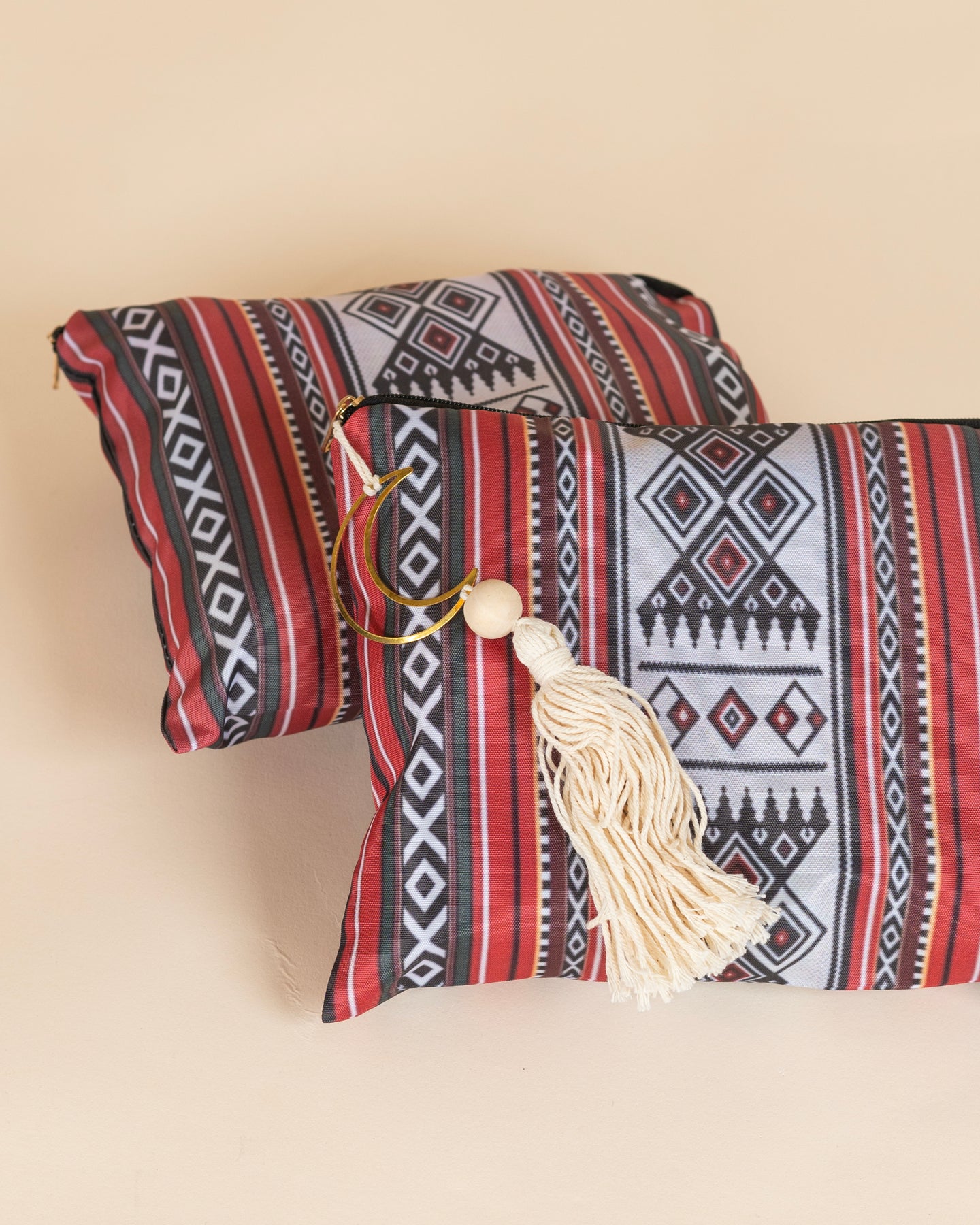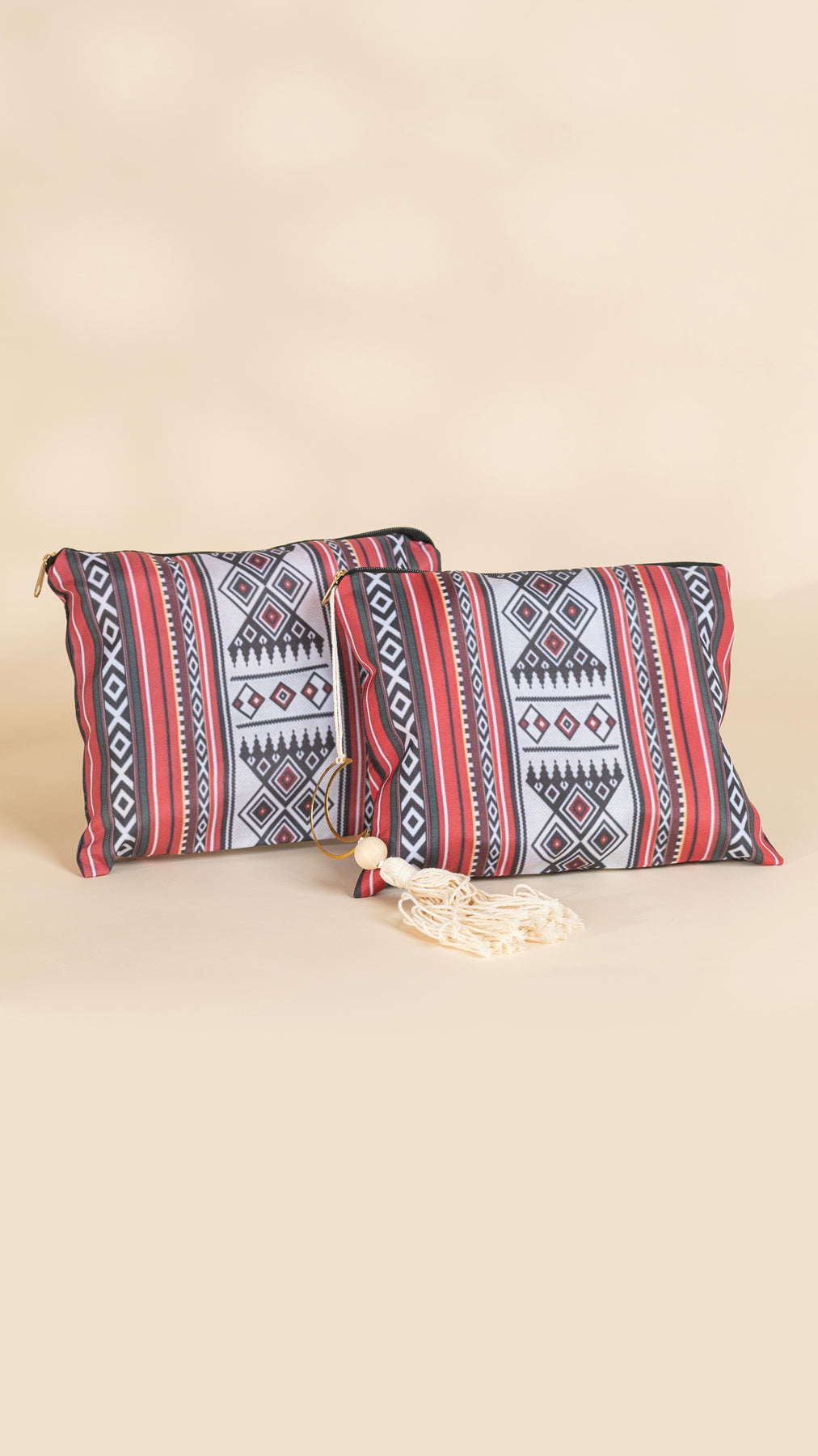 Crafted from high-quality, lightweight fabric and finished with a chic golden hoop and tassel detail, this bag stands out with its refined cultural charm. 💫